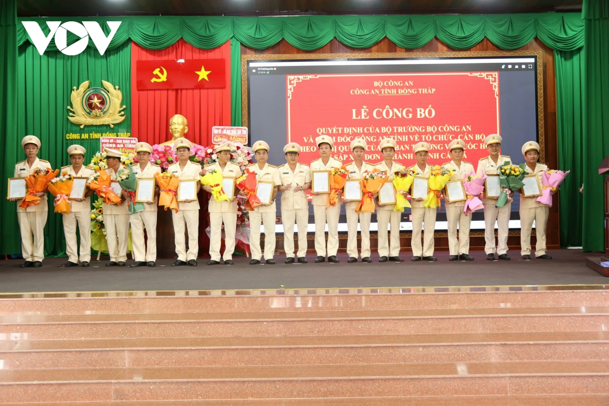 VOV.VN - Chiều 29/6, tại tỉnh Tiền Giang, tổ chức lễ công bố Quyết định của Bộ trưởng Bộ Công an và Giám đốc Công an tỉnh Đồng Tháp (mới) về sắp xếp công an cấp tỉnh và công an cấp xã.