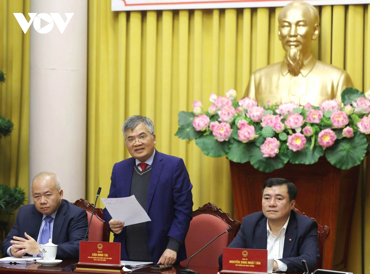Phó Chủ nhiệm Văn phòng Chủ tịch nước Cấn Đình Tài cùng đại diện lãnh đạo các bộ chủ trì họp báo