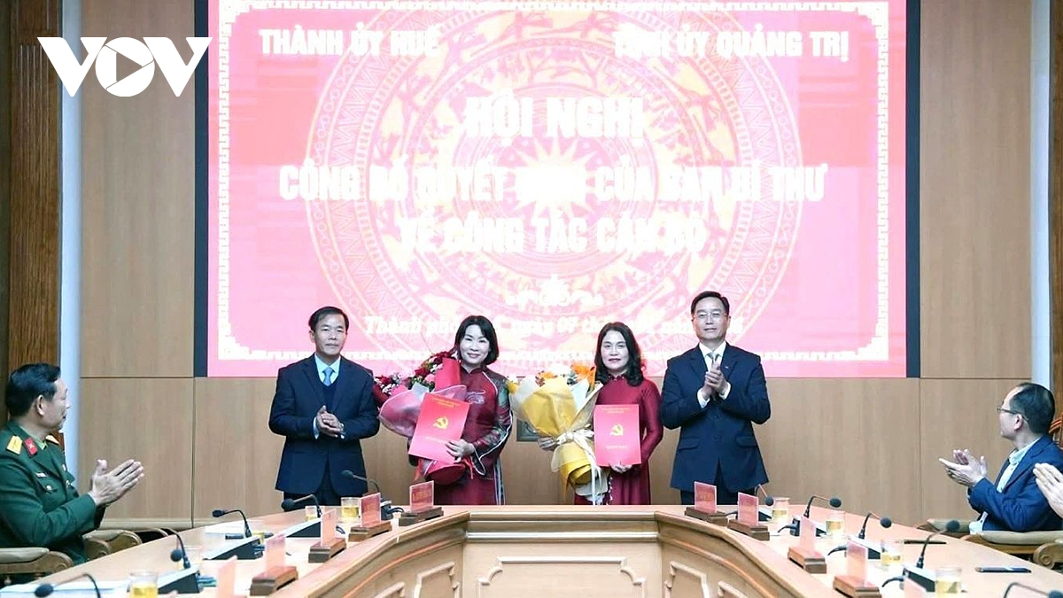 VOV.VN - Chiều 7/1, tại thành phố Huế, Thành ủy Huế phối hợp với Tỉnh ủy Quảng Trị tổ chức hội nghị công bố các quyết định của Ban Bí thư Trung ương Đảng về công tác cán bộ