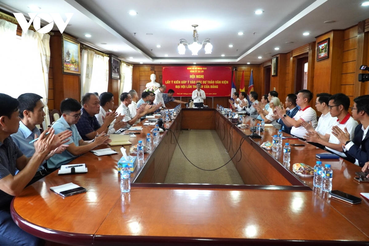 VOV.VN - Sáng 6/11, tại thủ đô Vientiane, Đảng ủy tại Lào đã tổ chức Hội nghị lấy ý kiến góp ý vào các dự thảo văn kiện trình Đại hội XIV của Đảng. Đa số cán bộ, đảng viên, cộng đồng người Việt tại Lào nhất trí cao với nội dung dự thảo văn kiện.