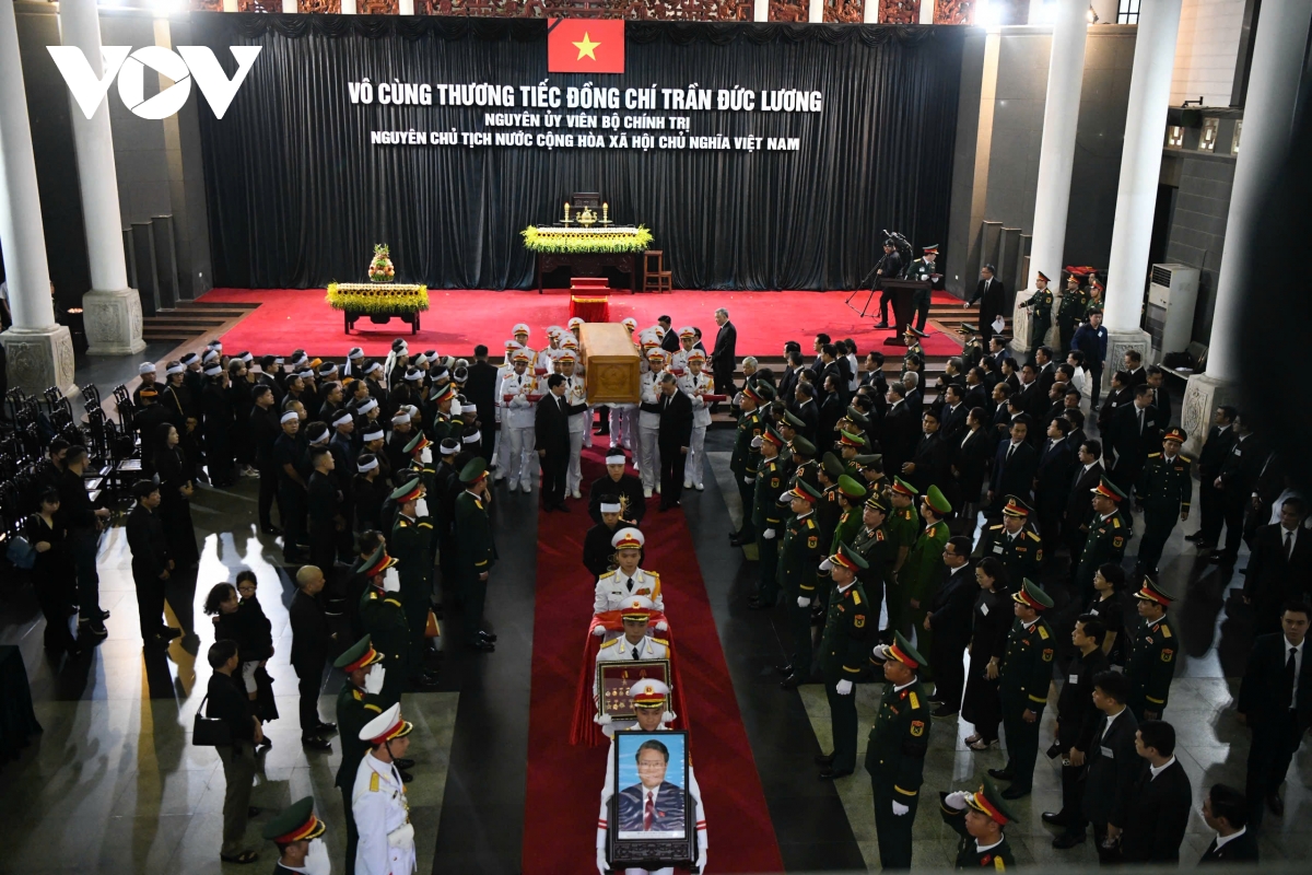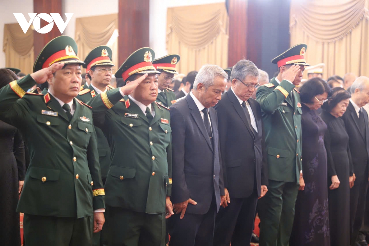 Các đồng chí lãnh đạo Đảng, Nhà nước, Mặt trận Tổ quốc Việt Nam cùng đồng chí, đồng bào và gia quyến dành phút mặc niệm tưởng nhớ nguyên Chủ tịch nước Trần Đức Lương.