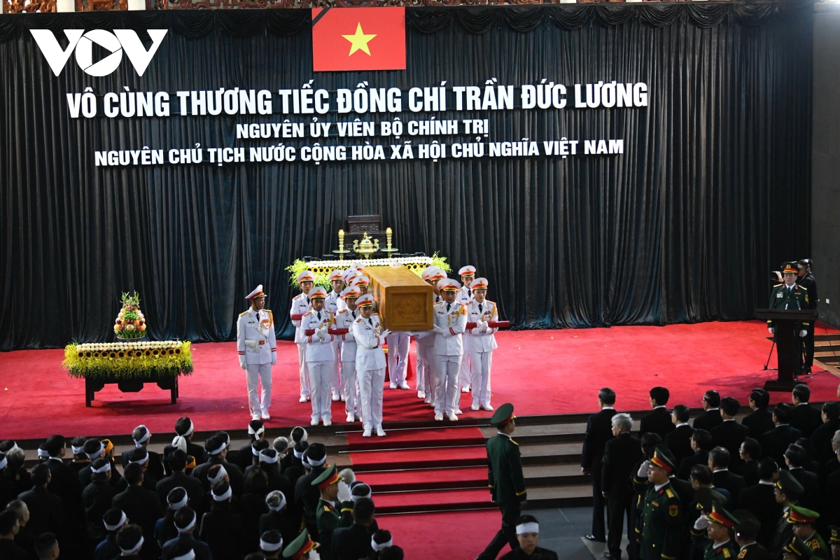 Thay mặt gia quyến, ông Trần Tuấn Anh- con trai nguyên Chủ tịch nước Trần Đức Lương đã phát biểu đáp từ, bày tỏ lòng biết ơn sâu sắc đến các đồng chí lãnh đạo, nguyên lãnh đạo Đảng, Nhà nước, các ban, bộ, ngành và đoàn thể Trung ương cũng như địa phương, các cơ quan ngoại giao, các tổ chức quốc tế, các vị khách trong nước và quốc tế đã gửi vòng hoa, điện chia buồn, đến trực tiếp để viếng và tiễn đưa ba ông - nguyên Chủ tịch nước Trần Đức Lương.
