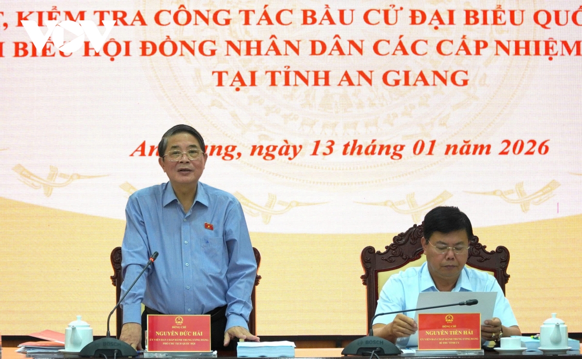 VOV.VN - Sáng nay (13/1), Đoàn giám sát, kiểm tra công tác bầu cử của Ủy ban Thường vụ Quốc hội - Hội đồng bầu cử Quốc gia do ông Nguyễn Đức Hải, Phó Chủ tịch Quốc hội làm trưởng đoàn đã làm việc tại tỉnh An Giang để kiểm tra công tác triển khai bầu cử Quốc hội và HĐND các cấp tại tỉnh.