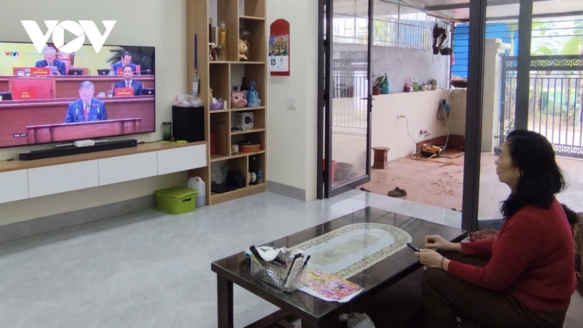 Theo phóng viên Vũ Lợi/VOV-Tây Bắc, ngay từ sáng sớm, tại thôn Việt Yên, xã Thanh Yên, tỉnh Điện Biên, nhiều người dân đã tập trung tại nhà trưởng thôn để theo dõi trực tiếp phiên khai mạc Đại hội. Những công việc đồng áng, hay việc gia đình đều được gác lại, mọi người cùng quây quần bên màn hình tivi, chăm chú theo dõi từng nội dung của phiên khai mạc quan trọng này.