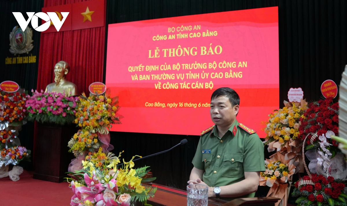 Cũng tại buổi lễ, Ban Giám đốc Công an tỉnh Cao Bằng đã Thông báo Quyết định của Bộ trưởng Bộ Công an về việc điều động Đại tá Nguyễn Quang Vinh (sinh năm 1976, quê quán tỉnh Ninh Bình), Giám đốc Công an tỉnh Bắc Giang, đến nhận công tác và giữ chức vụ Giám đốc Công an tỉnh Cao Bằng.