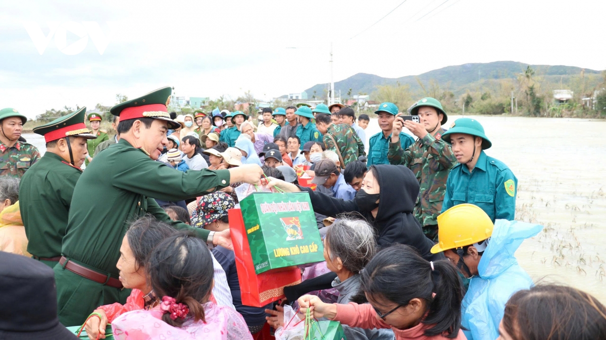 Đại tướng Phan Văn Giang khẳng định: Đảng, Nhà nước, Quân ủy Trung ương và Bộ Quốc phòng luôn theo sát tình hình, dành sự quan tâm sâu sắc đến đời sống nhân dân vùng bị thiệt hại do thiên tai.