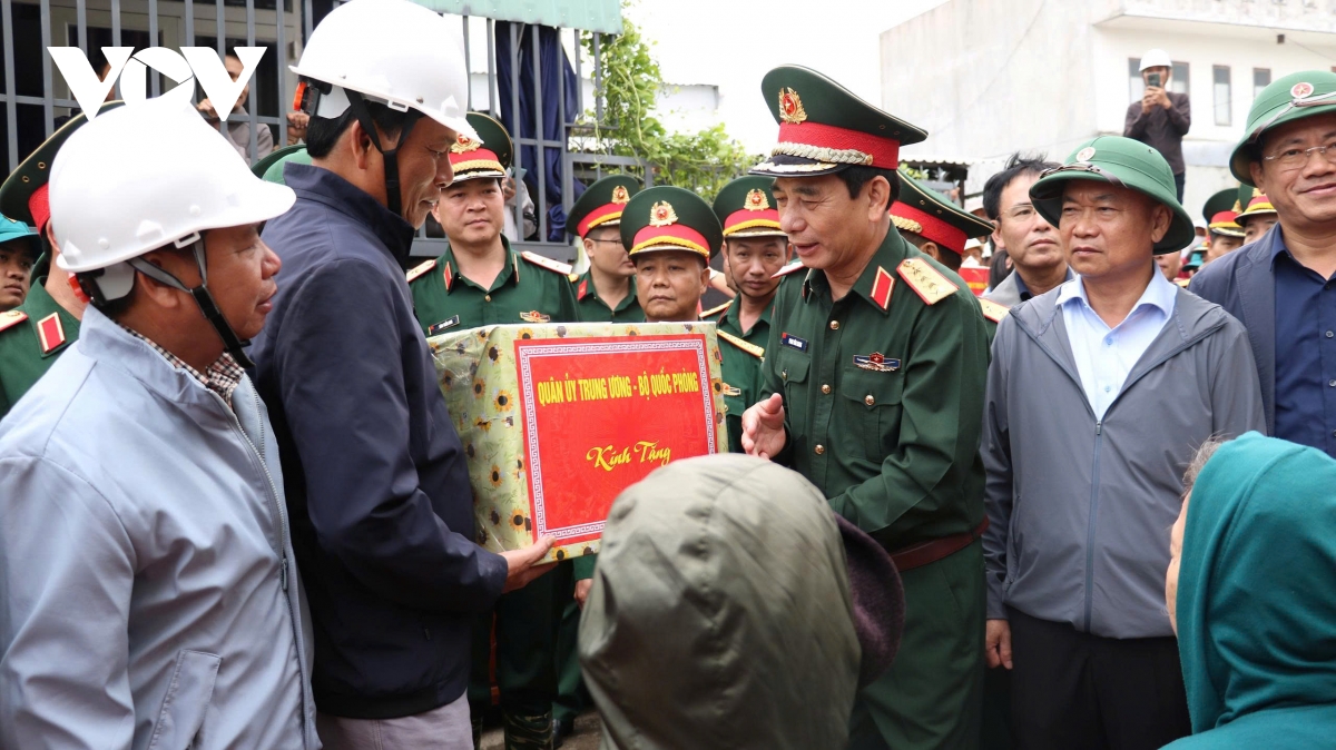 VOV.VN - Đại tướng Phan Văn Giang, Bộ trưởng Bộ Quốc phòng đã đến thăm hỏi, động viên và tặng quà nhân dân bị ảnh hưởng do thiên tai tại xã Tuy Phước, tỉnh Gia Lai.
