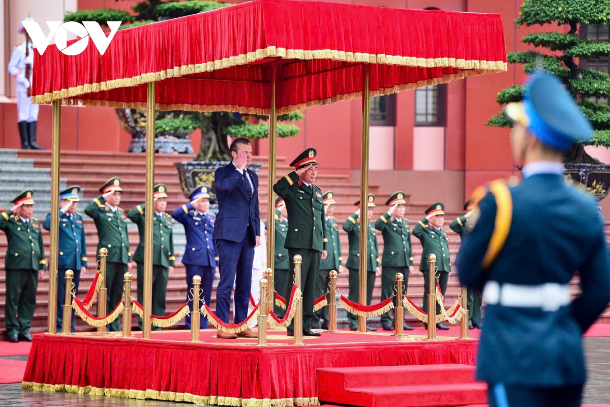 Đại tướng Phan Văn Giang và Bộ trưởng Chiến tranh Hoa Kỳ Pete Hegseth duyệt Đội danh dự Quân đội nhân dân Việt Nam