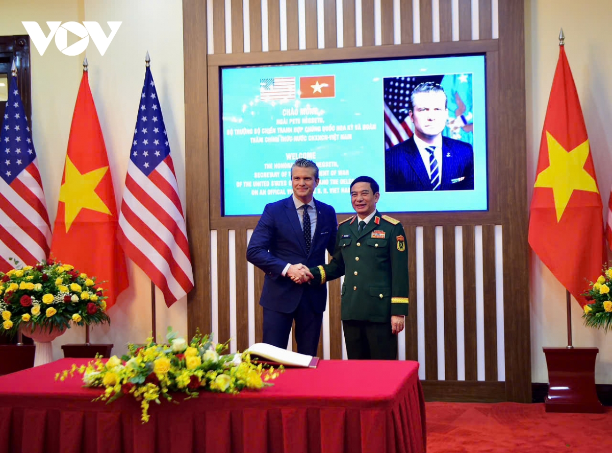 VOV.VN - Nhận lời mời của Đại tướng Phan Văn Giang, Bộ trưởng Bộ Quốc phòng, ông Pete Hegseth, Bộ trưởng Chiến tranh Hoa Kỳ đang có chuyến thăm và làm việc tại Việt Nam.