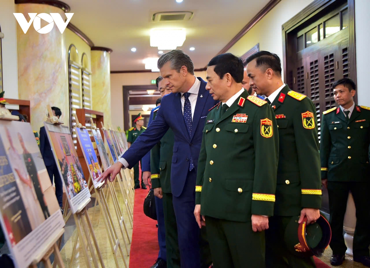 Hai Bộ trưởng tham quan trưng bày ảnh về hợp tác quốc phòng Việt Nam và Hoa Kỳ