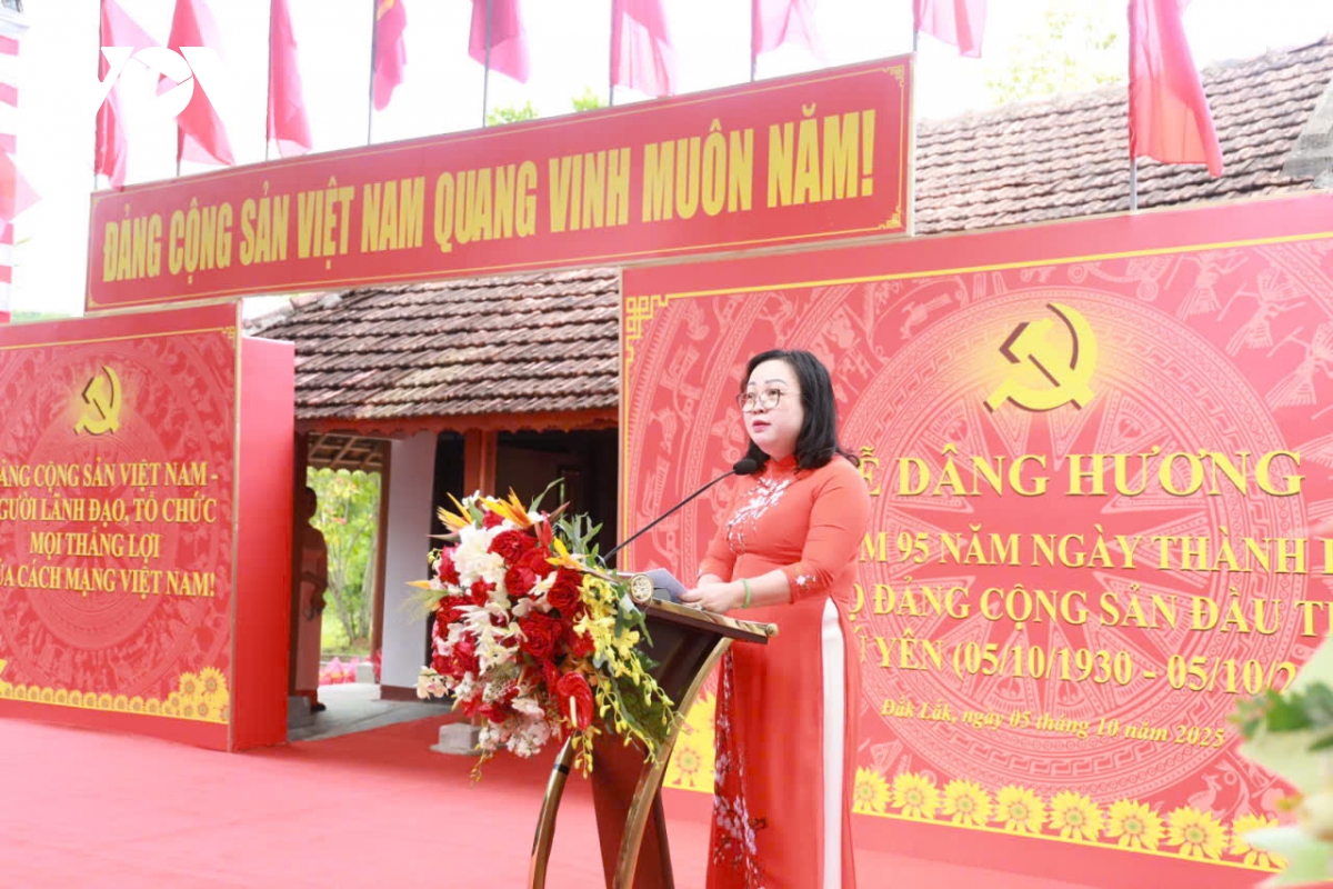 VOV.VN -Sáng 5/10, tại Di tích lịch sử nơi thành lập Chi bộ Đảng Cộng sản đầu tiên ở Phú Yên (xã Đồng Xuân, tỉnh Đắk Lắk), Tỉnh ủy, HĐND, UBND, Ủy ban MTTQ Việt Nam tỉnh Đắk Lắk tổ chức Lễ kỷ niệm 95 năm Ngày thành lập Chi bộ Đảng Cộng sản đầu tiên ở Phú Yên (5/10/1930 – 5/10/2025).