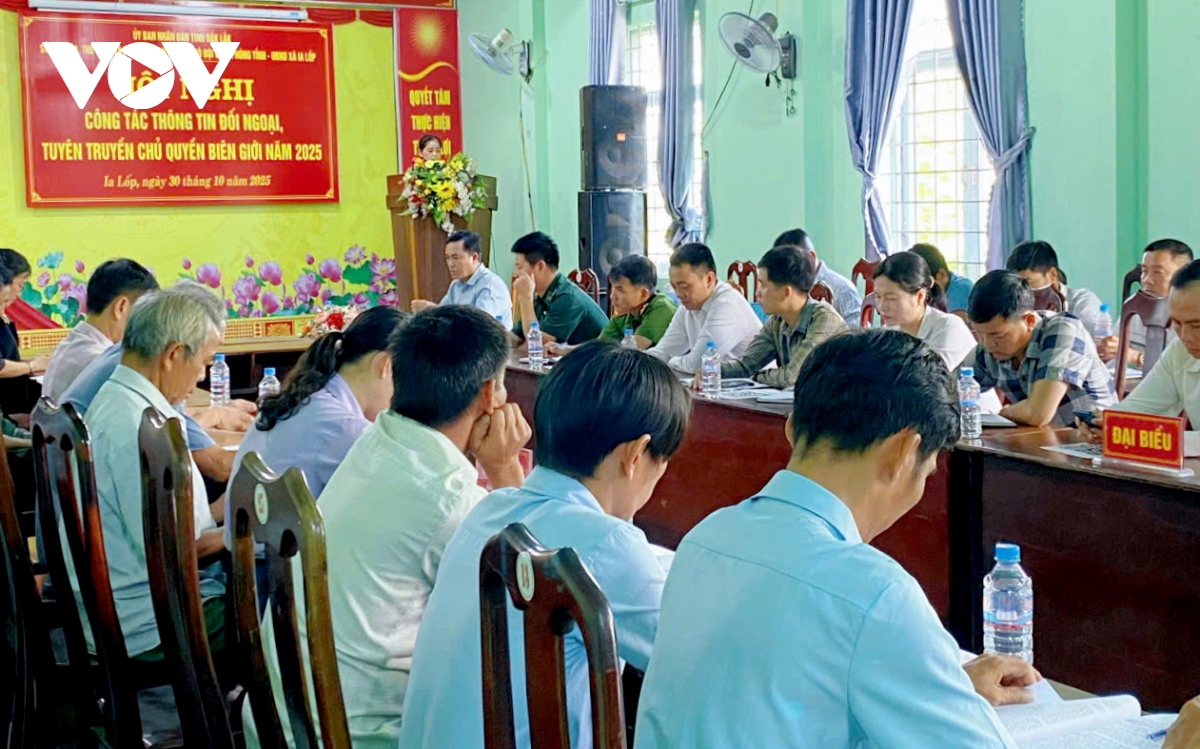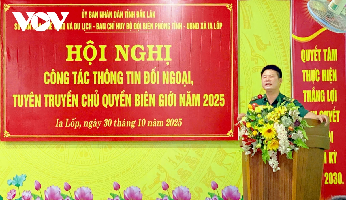 VOV.VN - Sáng nay (30/10), tại xã Ia Lốp, Sở Văn hóa, Thể thao và Du lịch tỉnh Đắk Lắk phối hợp với Ban Chỉ huy Bộ đội Biên phòng tỉnh tổ chức Hội nghị tuyên truyền công tác thông tin đối ngoại, tuyên truyền chủ quyền biên giới năm 2025.