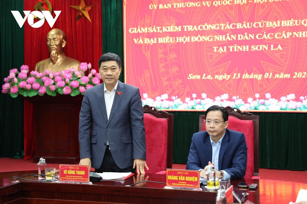 Phát biểu tại cuộc làm việc, Phó Chủ tịch Quốc hội Vũ Hồng Thanh đề nghị tỉnh Sơn La tiếp tục triển khai các bước, quy trình bầu cử đảm bảo chặt chẽ, đúng luật định; đặc biệt là thời gian giới thiệu những người được ứng cử, lấy ý kiến cử tri nơi công tác và thực hiện việc kê khai, tiếp nhận, xem xét hồ sơ của người ứng cử; tổ chức các hội nghị hiệp thương đúng thời hạn để lập danh sách chính thức những người ứng cử đại biểu Quốc hội, đại biểu HĐND đảm bảo chất lượng, số lượng, cơ cấu, thành phần, số dư theo quy định; lập, công bố và niêm yết danh sách, tiểu sử tóm tắt của những người ứng cử chính xác, đầy đủ thông tin; rà soát, cập nhật, bổ sung danh sách cử tri để đảm bảo quyền bầu cử của công dân, nhất là những người đang làm việc, học tập ở xa, người khuyết tật, người già yếu...