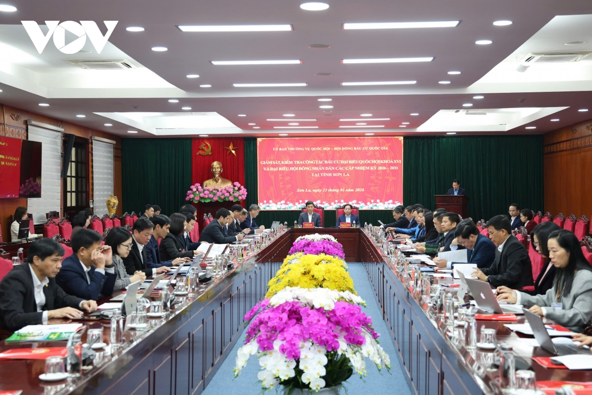 VOV.VN - Ngày 13/1, Đoàn giám sát, kiểm tra của Ủy ban Thường vụ Quốc hội, Hội đồng Bầu cử Quốc gia, do ông Vũ Hồng Thanh, Ủy viên Ban Chấp hành TW Đảng, Phó Chủ tịch Quốc hội làm Trưởng đoàn, đã giám sát, kiểm tra công tác bầu cử đại biểu Quốc hội khóa XVI và đại biểu HĐND các cấp nhiệm kỳ 2026 - 2031 tại tỉnh Sơn La.