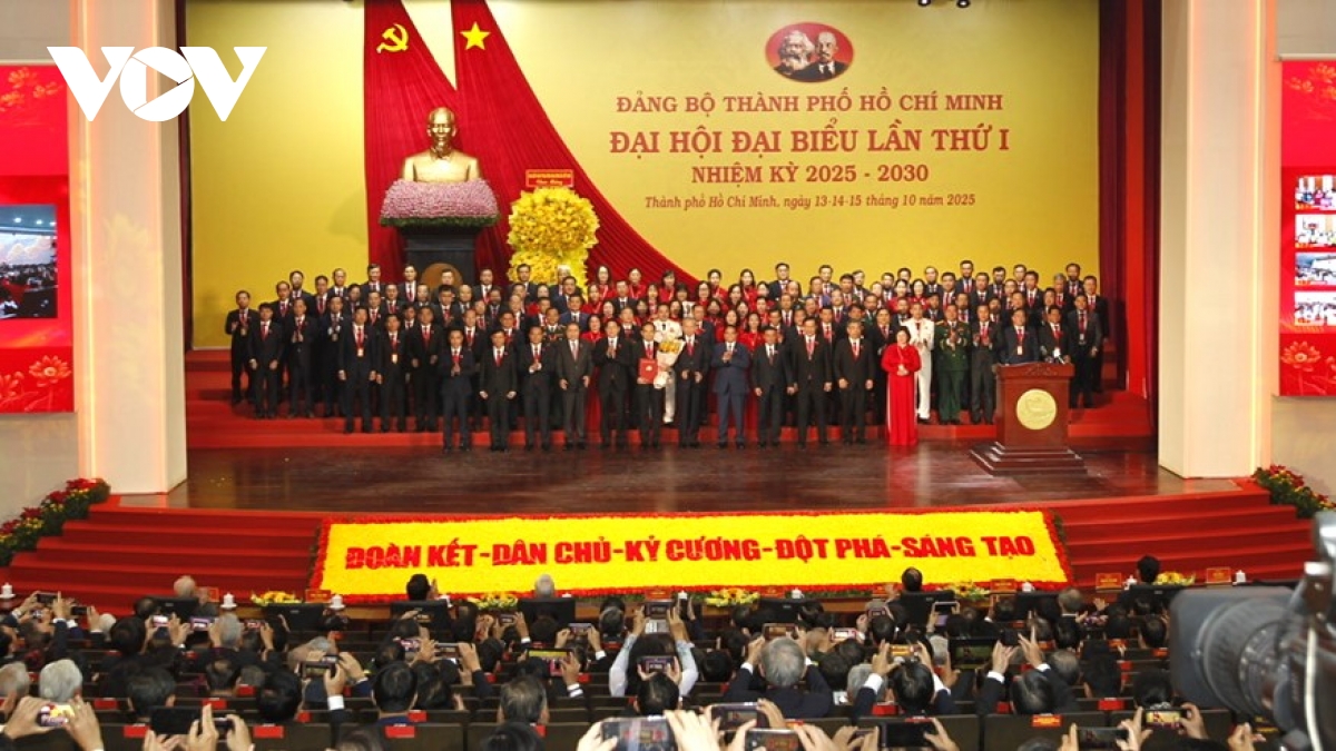 VOV.VN - Ngày 14/10, tại phiên khai mạc Đại hội đại biểu Đảng bộ TP.HCM lần thứ I, nhiệm kỳ 2025-2030 đã diễn ra lễ công bố quyết định của Bộ Chính trị về việc chỉ định Ban Chấp hành Đảng bộ TP.HCM nhiệm kỳ 2025-2030.