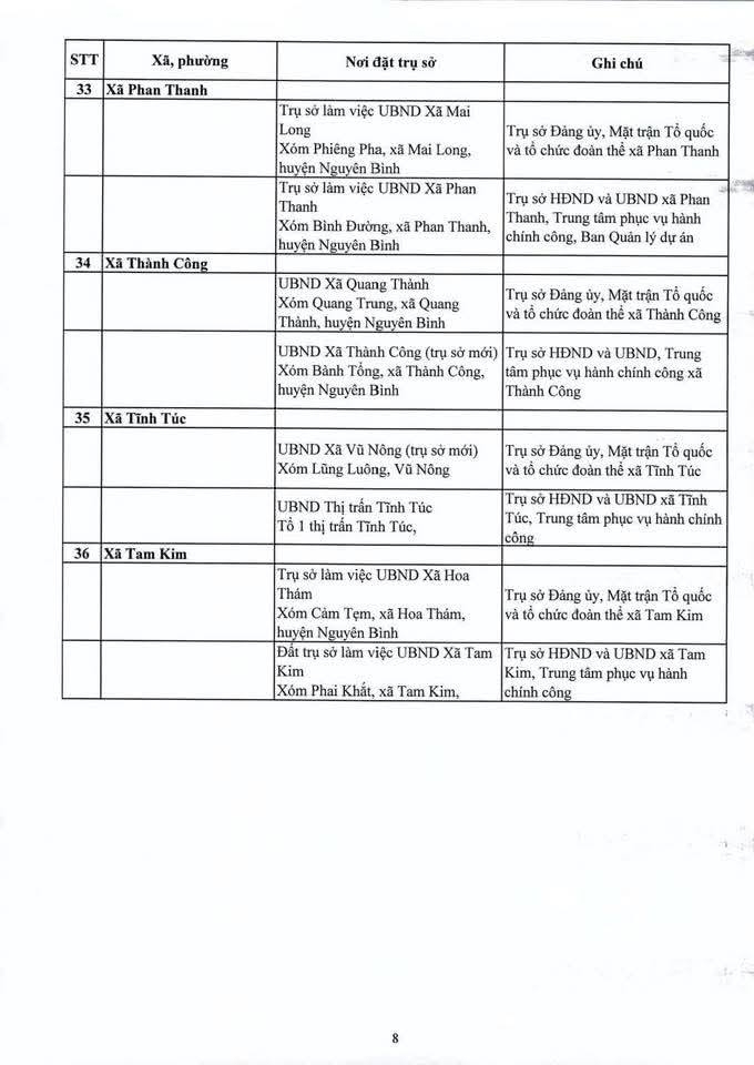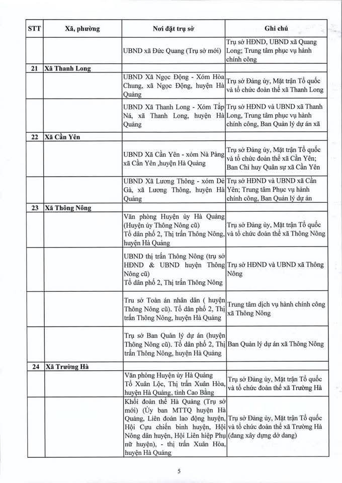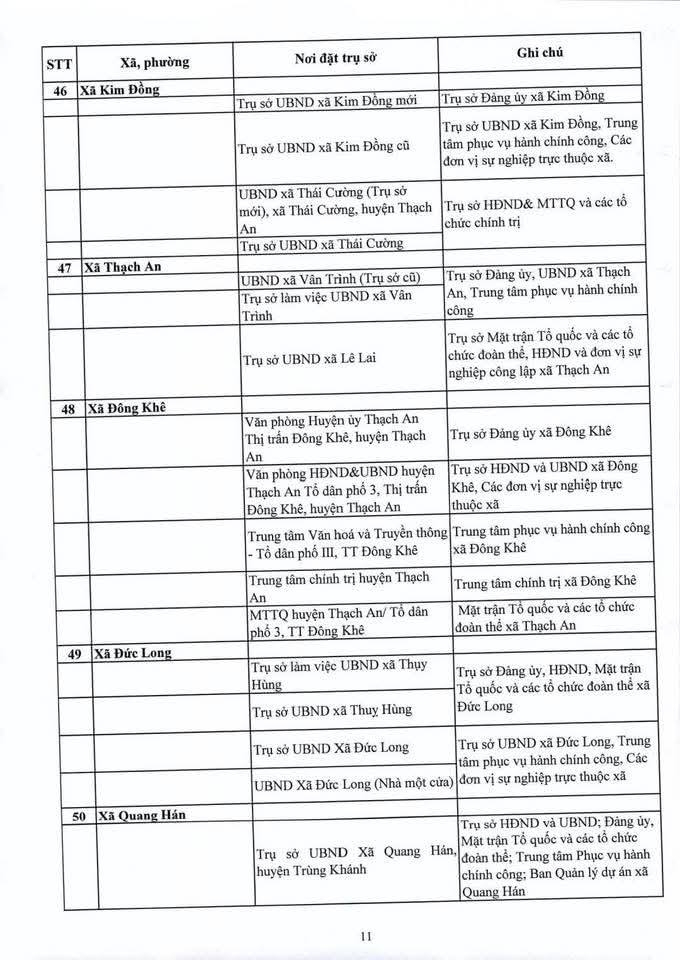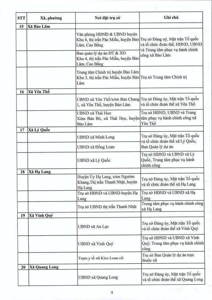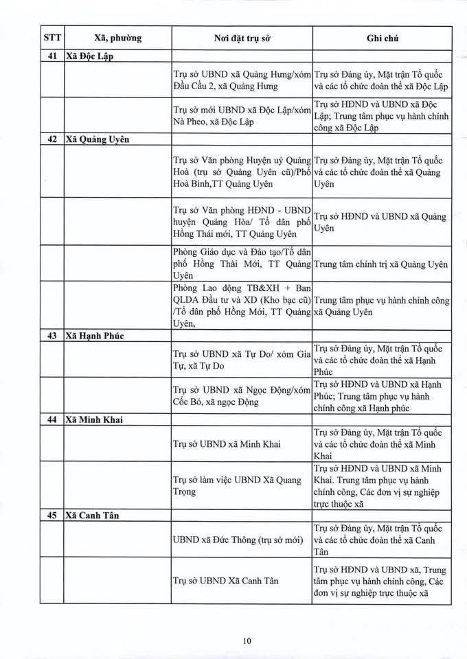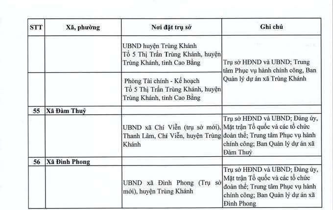 Địa điểm trụ sở làm việc của các đơn vị hành chính mới sẽ được bố trí như sau: