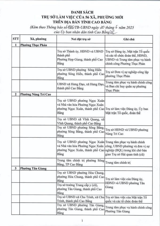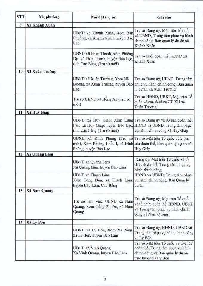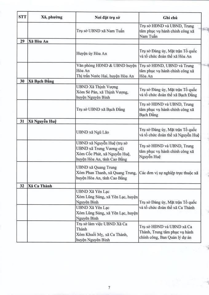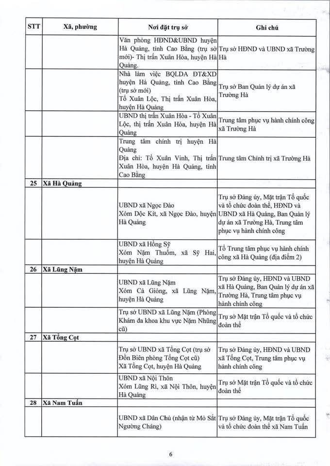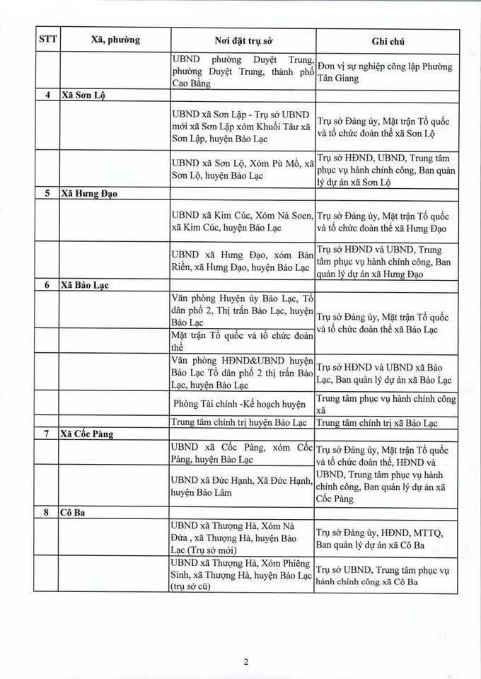 Địa điểm trụ sở làm việc của các đơn vị hành chính mới sẽ được bố trí như sau: