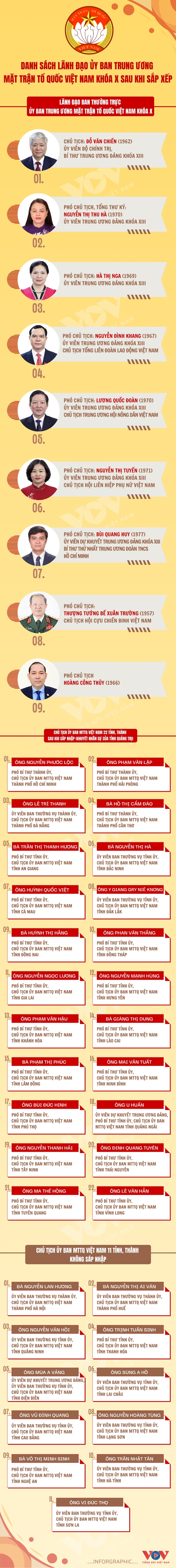 "Danh sách lãnh đạo Ủy ban Trung ương MTTQ Việt Nam khóa X sau khi sắp xếp"