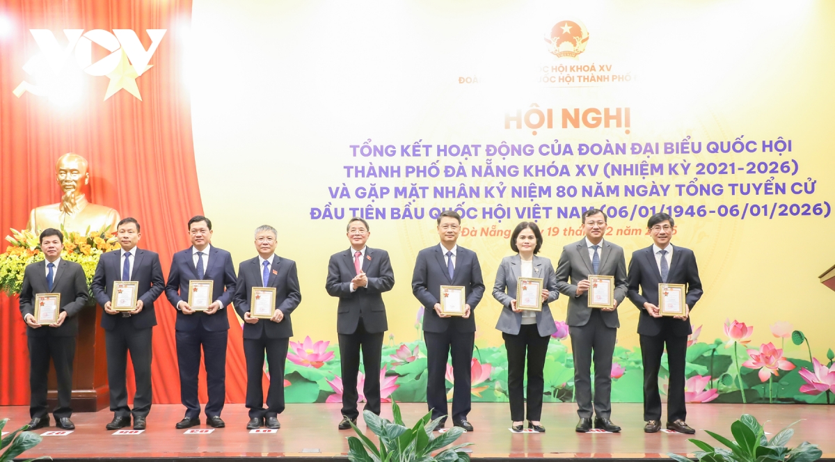 Chiều nay (19/12), Đoàn đại biểu Quốc hội (ĐBQH) thành phố Đà Nẵng tổ chức Hội nghị Tổng kết hoạt động của Đoàn ĐBQH thành phố Đà Nẵng khóa 15 (nhiệm kỳ 2021 - 2026) và gặp mặt nhân Kỷ niệm 80 năm ngày Tổng tuyển cử đầu tiên bầu Quốc hội Việt Nam (06/01/1946 - 06/01/2026).