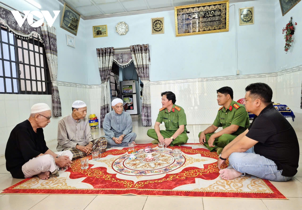 "Địa bàn xã Châu Phong là địa bàn dân tộc, chúng tôi cũng thông qua vai trò của các chức sắc, chức việc trong cộng đồng Hồi giáo, Ban Quản trị của Thánh đường, Tiểu Thánh đường, người có uy tín trong dân tộc Chăm hỗ trợ lực lượng Công an trong việc tuyên truyền các chủ trương, đường lối, chính sách của Đảng, pháp luật của Nhà nước đến người dân. Trong vấn đề tự do tín ngưỡng tôn giáo cũng như tổ chức các hoạt động lễ hội tôn giáo dân tộc, Đảng ủy, UBND, lực lượng Công an luôn quan tâm hỗ trợ hết mình để cho cộng đồng Hồi giáo Chăm cũng như các tín đồ Hồi giáo được tín ngưỡng thuận lợi, tổ chức các lễ hội bảo đảm an ninh trật tự", Trung tá Trần Thanh Vân nói.