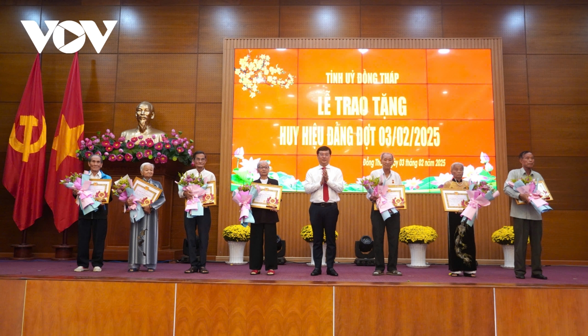 VOV.VN - Nhân dịp kỷ niệm 80 năm Cách mạng Tháng Tám thành công và Quốc khánh 2/9, Ban Thường vụ Tỉnh ủy Đồng Tháp đã quyết định trao tặng và truy tặng 1.018 Huy hiệu Đảng cho các đảng viên cao niên tiêu biểu.