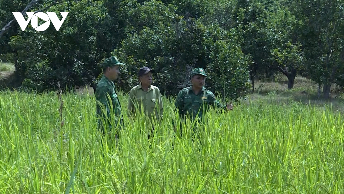Già Bơng chia sẻ: "Đầu tháng, cuối tháng đều họp tuyên truyền cho bà con xóm làng, tập trung vào công tác biên giới làm sao giữ gìn biên giới an toàn, không để xảy ra những mâu thuẫn gây mất trật tự an ninh chính trị trong xã hội. Trong thời gian qua bà con chấp hành nghiêm. Mình sát cánh với bộ đội biên phòng, kết hợp với họp bà con trong làng, tuyên truyền cho nhân dân, bà con nghe, tin tưởng và chấp hành nghiêm giúp tình hình thời gian qua luôn luôn ổn định, đảm bảo".