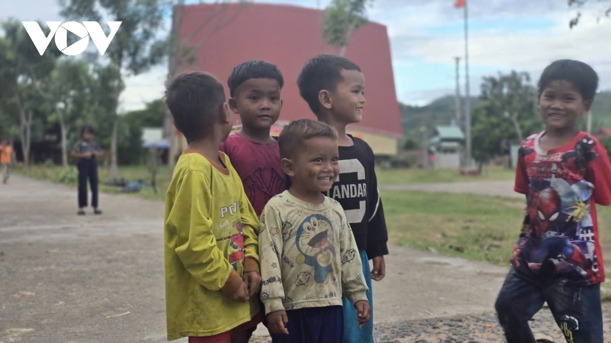 Các em nhỏ chơi đùa tại đường làng Bi, xã ia O, tỉnh Gia Lai