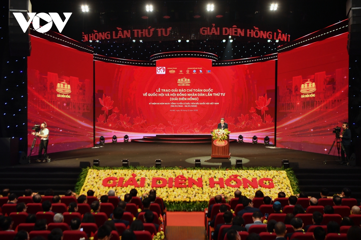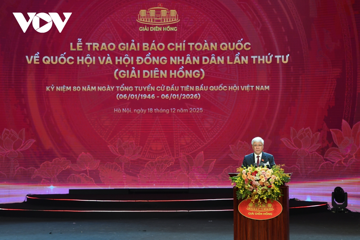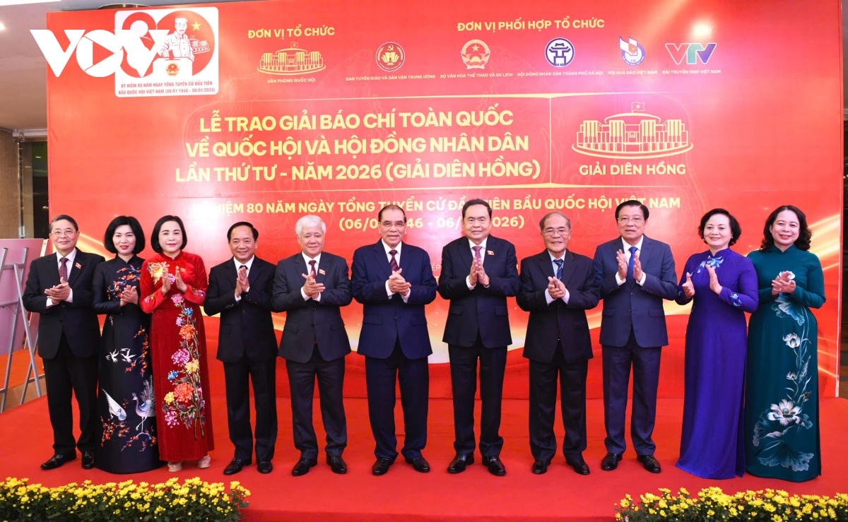 VOV.VN - Lễ trao Giải Báo chí toàn quốc về Quốc hội và Hội đồng nhân dân (Giải Diên Hồng) lần thứ tư năm 2026 đã được tổ chức tối 18/12 tại Cung Văn hóa Lao động Hữu nghị Việt - Xô (Hà Nội).