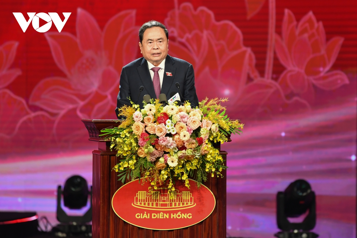 Chủ tịch Quốc hội Trần Thanh Mẫn phát biểu tại Lễ trao Giải Diên Hồng lần thứ tư. Phát biểu của Chủ tịch Quốc hội nhấn mạnh báo chí đồng hành, góp phần để mỗi quyết định của Quốc hội đều thể hiện tầm nhìn chiến lược.