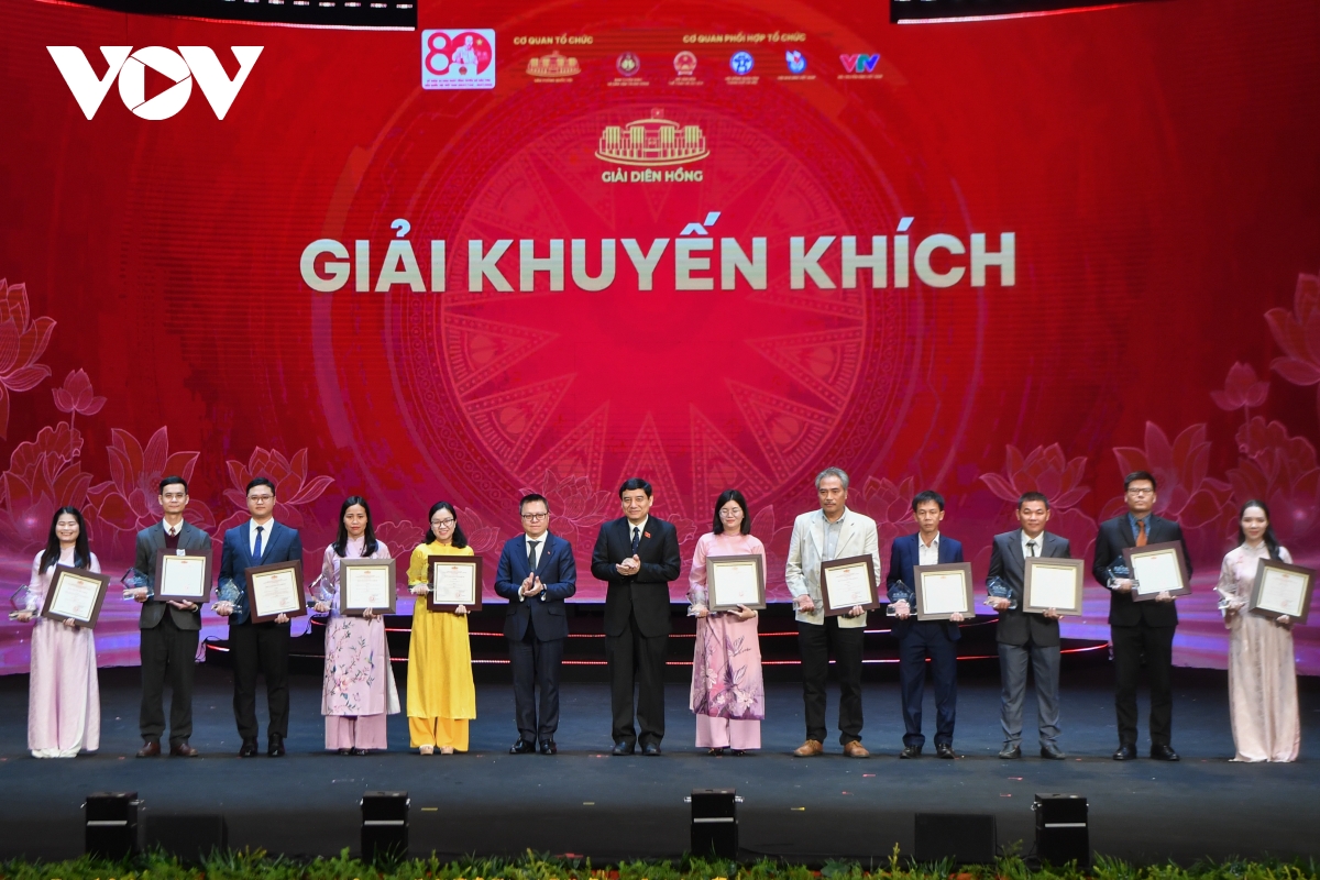 Phó Trưởng Ban Tuyên giáo và Dân vận Trung ương, Tổng Biên tập Báo Nhân dân, Chủ tịch Hội Nhà báo Việt Nam Lê Quốc Minh và Ủy viên Trung ương Đảng, Chủ nhiệm Ủy ban Văn hóa và Xã hội của Quốc hội Nguyễn Đắc Vinh trao giải cho các tác giả, nhóm tác giả đoạt giải Khuyến khích.