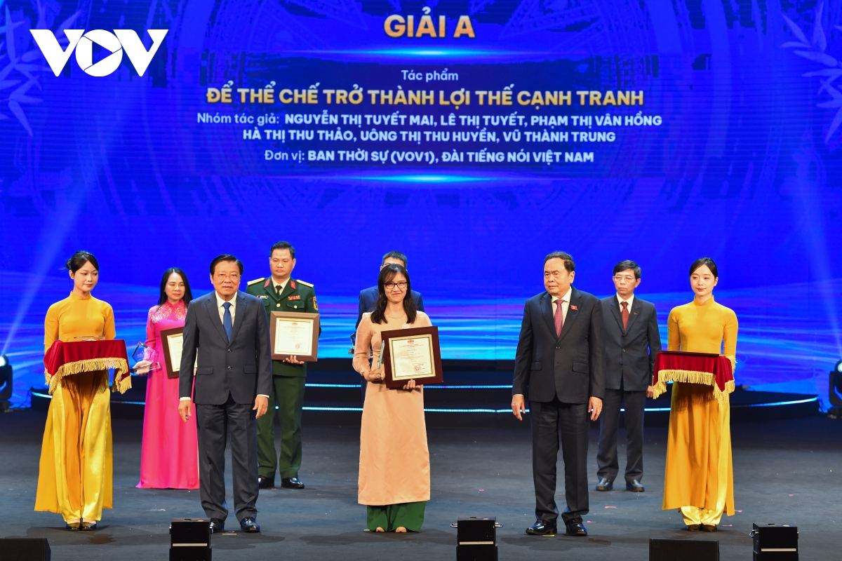 Nhóm tác giả Tuyết Mai, Lê Tuyết, Vân Hồng, Thu Thảo, Thu Huyền, Thành Trung - Ban Thời sự (VOV1), Đài Tiếng nói Việt Nam giành giải A với tác phẩm "Để thể chế trở thành lợi thế cạnh tranh".