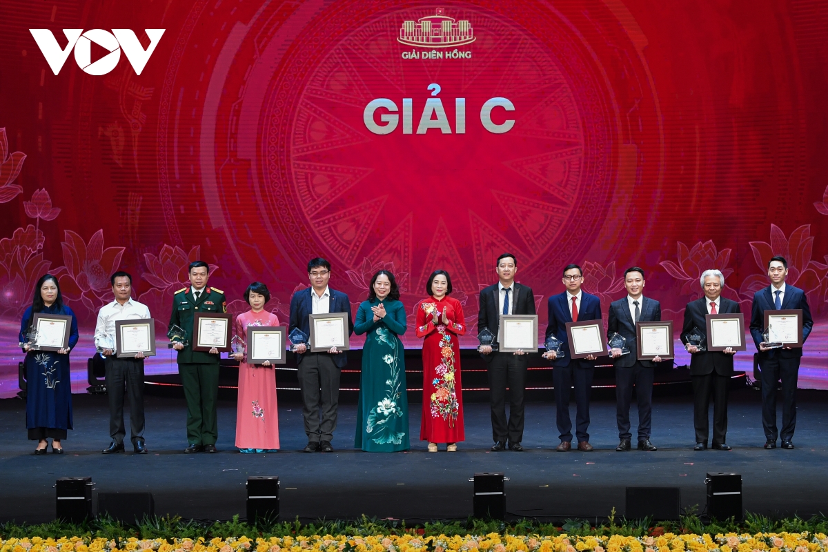 Phó Chủ tịch nước Võ Thị Ánh Xuân và Phó Chủ tịch Quốc hội Nguyễn Thị Thanh trao giải C cho các tác giả, nhóm tác giả. Tác phẩm "Loạt 4 bài: Quốc hội viết tiếp hành trình kiên định, sáng tạo và không ngừng đổi mới" của nhóm tác giả Uông Ngọc Thành, Phí Hoàng Lê, Nguyễn Hà Phương - Báo Điện tử Tiếng nói Việt Nam, Đài Tiếng nói Việt Nam giành giải C tại Giải báo chí Diên Hồng lần thứ tư.