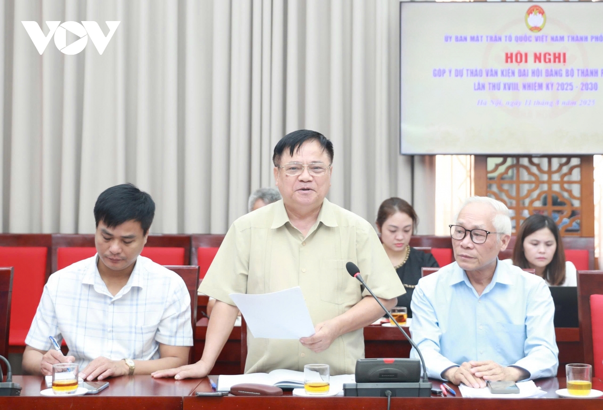 VOV.VN - Góp ý vào Dự thảo Văn kiện Đại hội Đảng bộ TP. Hà Nội lần thứ XVIII, nhiệm kỳ 2025-2030, thu hút nhiều đóng góp giá trị nhằm định hình một Thủ đô văn hiến, văn minh, hiện đại, phồn vinh, hạnh phúc. Các ý kiến tập trung vào việc làm rõ chủ đề và phương châm của Đại hội, thể hiện tầm nhìn chiến lược và khát vọng phát triển của Hà Nội