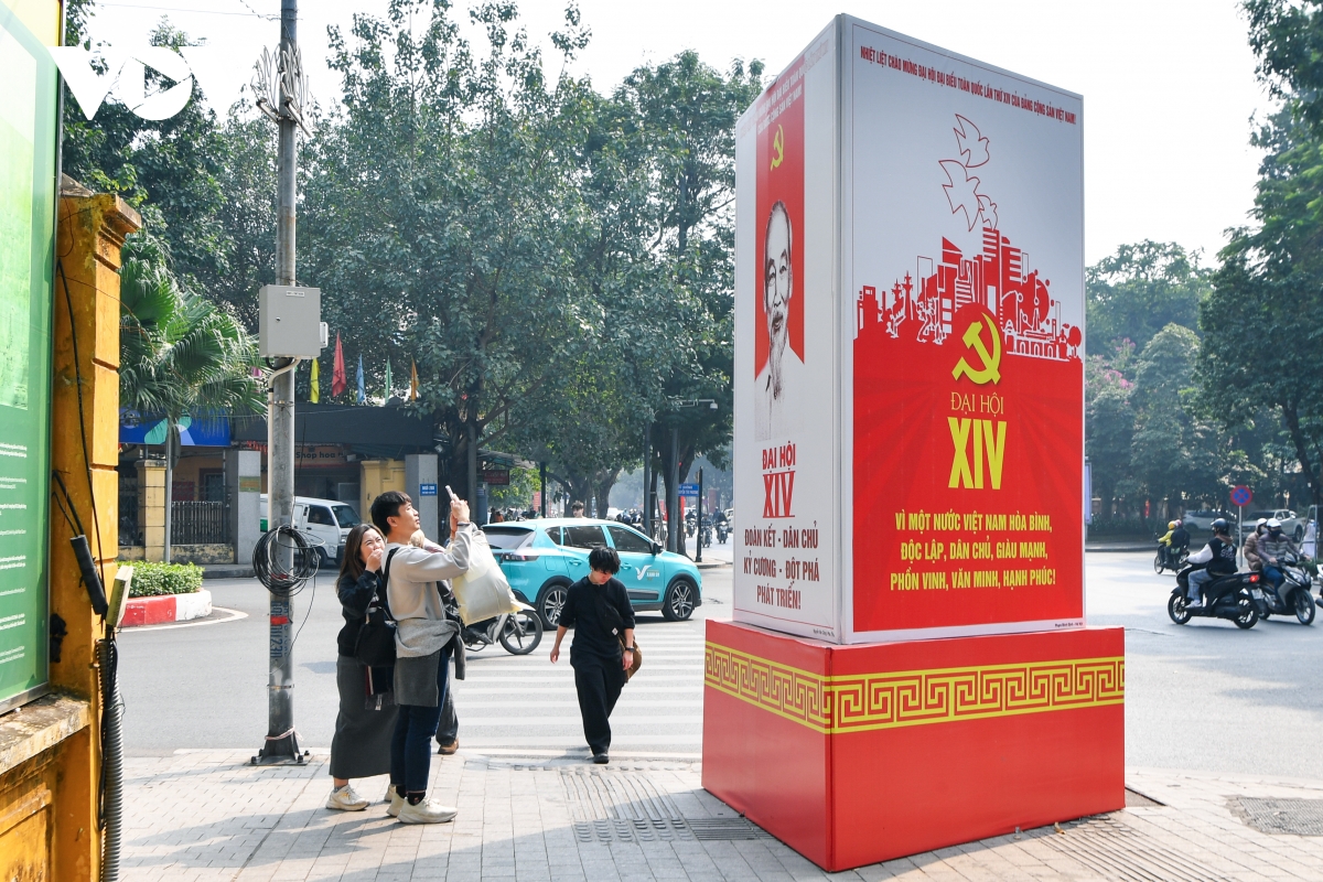 Trang trí chào mừng Đại hội lần thứ XIV của Đảng thu hút sự chú ý của du khách.