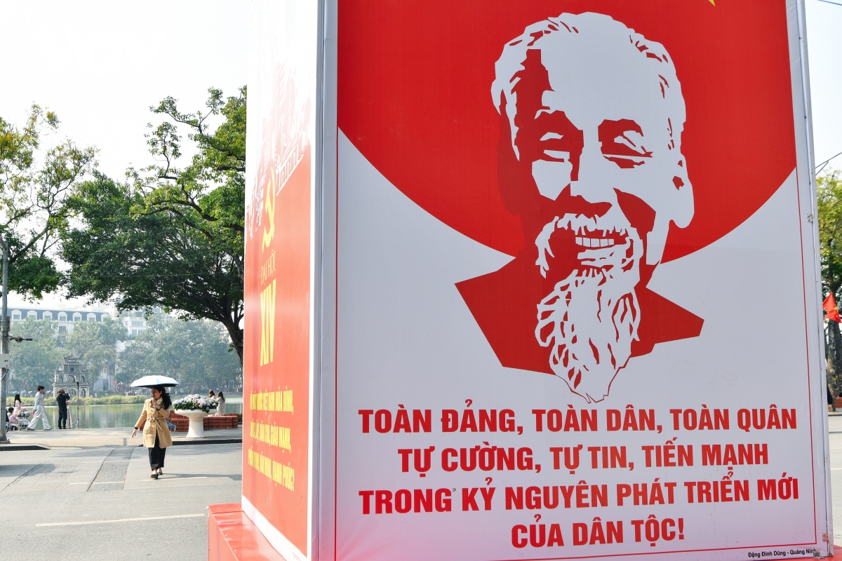 Những ngày này, đường phố tại Thủ đô Hà Nội được trang hoàng rực rỡ với cờ, hoa, pano, áp phích chào mừng Đại hội lần thứ XIV của Đảng.