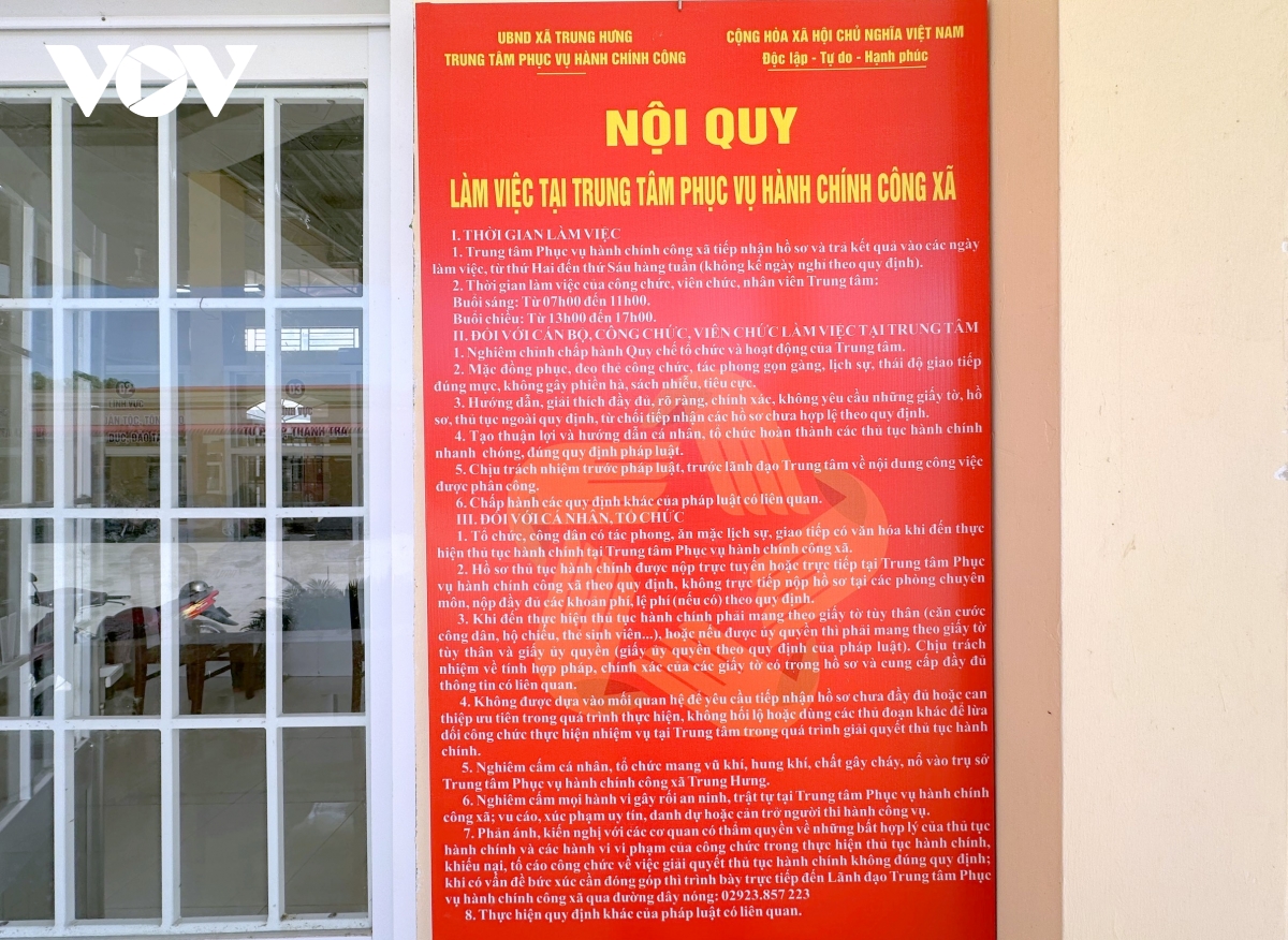 Nội quy làm việc tại Trung tâm hành chính công xã Trung Hưng.