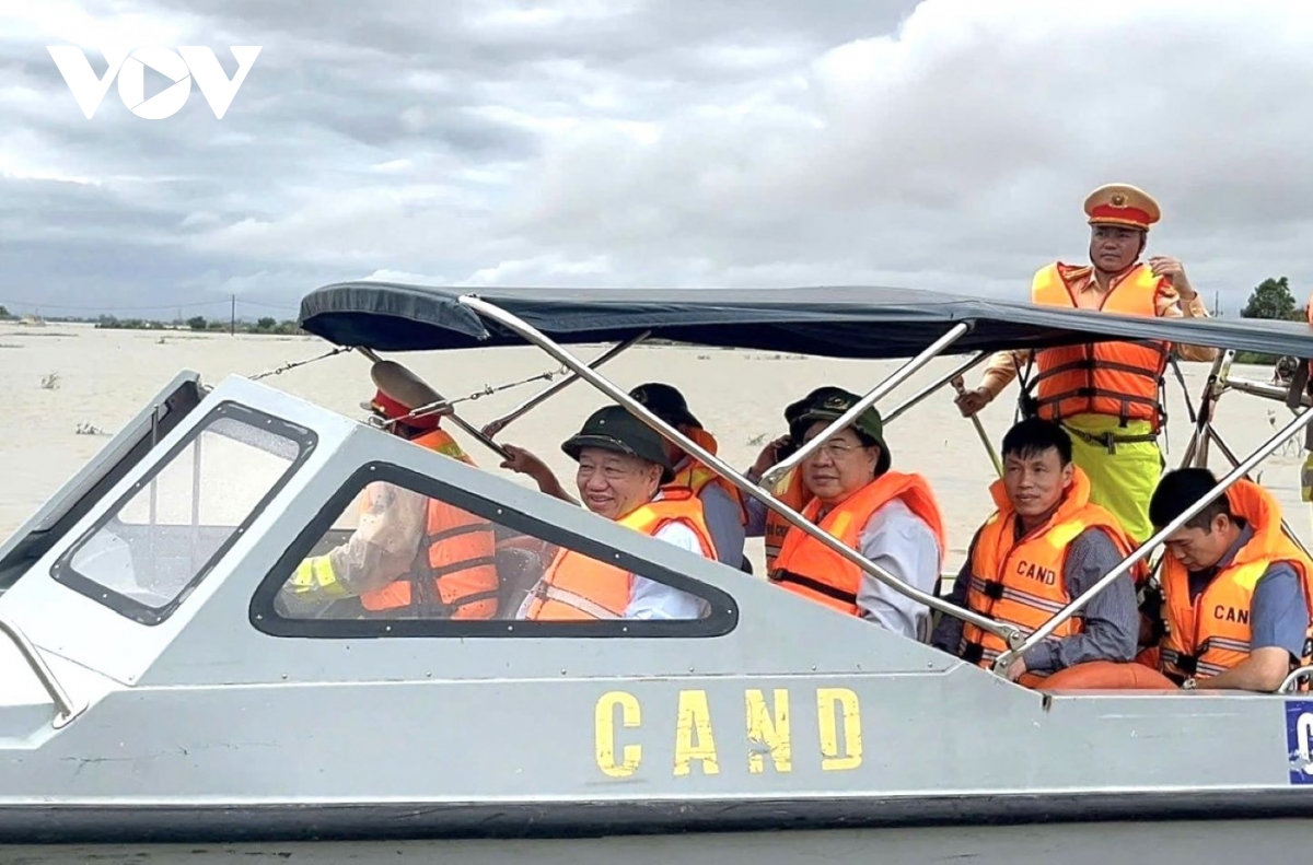 Tổng Bí thư Tô Lâm và đoàn công tác đã trực tiếp đến thôn Khuôn Phò Đông, xã Quảng Điền, nơi bị cô lập và chịu thiệt hại nặng nề trong đợt mưa lũ kéo dài những ngày qua. Hiện tại, khu vực này vẫn còn bị ngập sâu, việc đi lại của người dân gặp nhiều khó khăn.