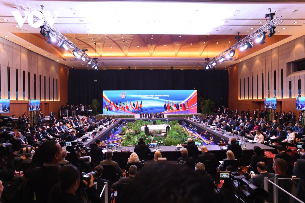 Tại Hội nghị Bộ trưởng Ngoại giao Cấp cao Đông Á (EAS) lần thứ 15, các nước khẳng định vai trò của EAS trong thúc đẩy chủ nghĩa đa phương, luật pháp quốc tế và môi trường hòa bình, hợp tác. Các Bộ trưởng cam kết ủng hộ vai trò trung tâm của ASEAN và nâng cao hiệu quả EAS trong bối cảnh kỷ niệm 20 năm thành lập.