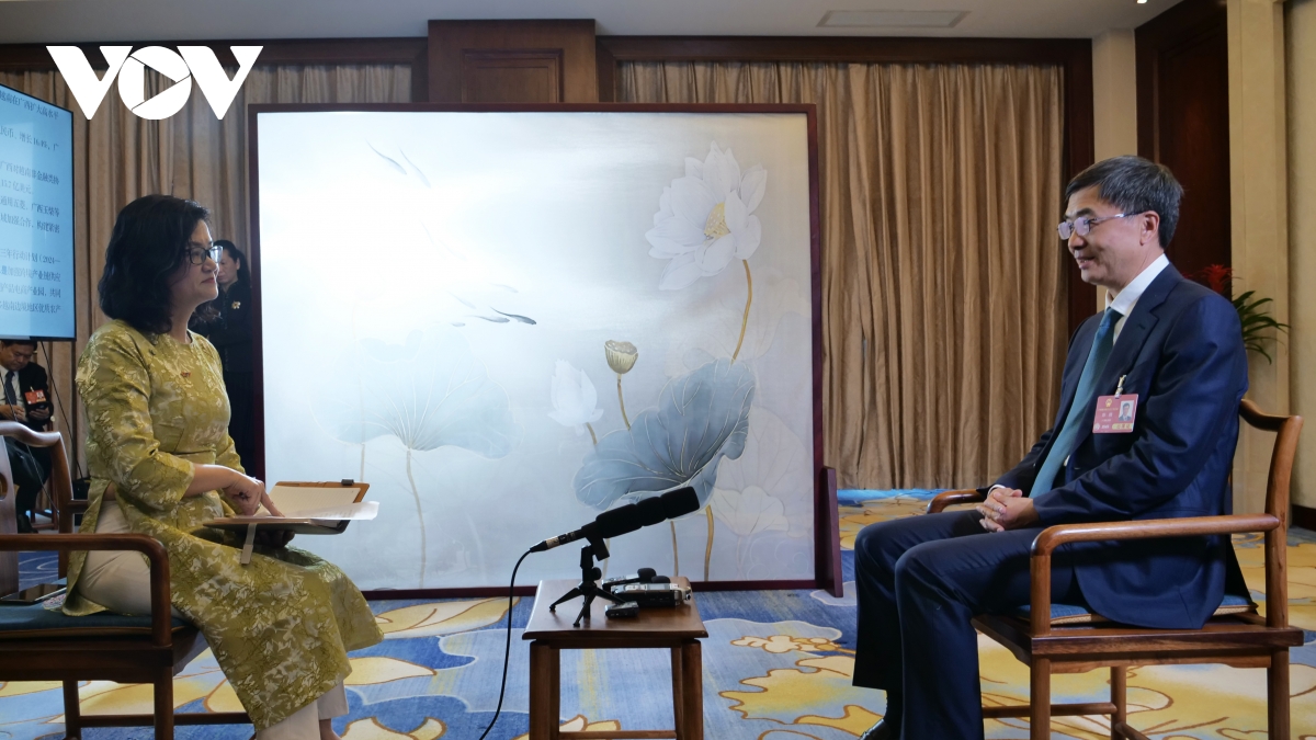 Bí thư Đảng ủy Khu tự trị dân tộc Choang Quảng Tây Trần Cương trả lời phỏng vấn của VOV