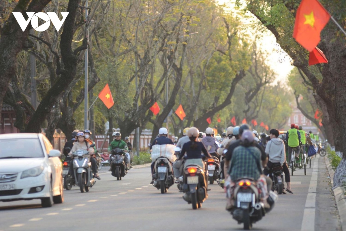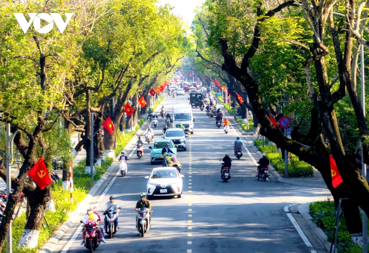 Nhiều tuyến đường của thành phố Huế, cờ hoa rực rỡ chào mừng Đại hội XIV của Đảng.