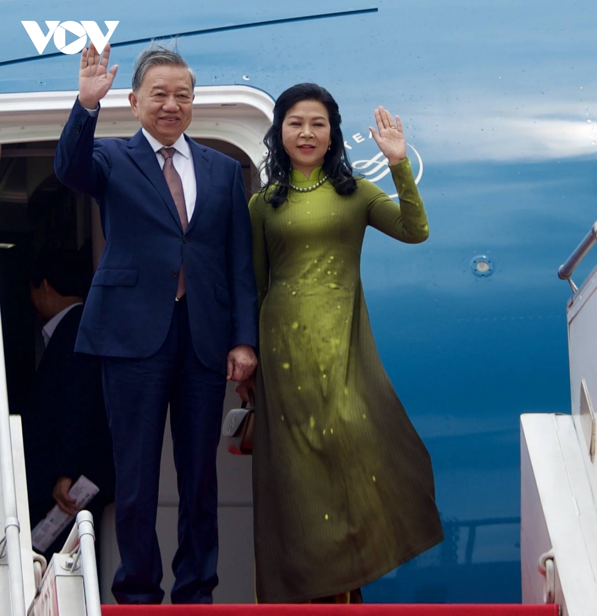Tổng Bí thư Tô Lâm cùng Phu nhân và Đoàn đại biểu cấp cao tới sân bay quân sự Halim Pedranakusuma ở Thủ đô Jakarta