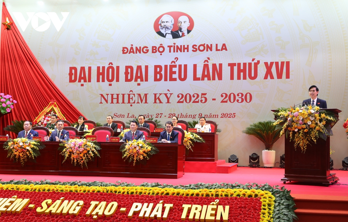 VOV.VN - Sáng 28/9, Đại hội đại biểu Đảng bộ tỉnh Sơn La lần thứ XVI nhiệm kỳ 2025-2030 đã chính thức khai mạc. Với phương châm “Đoàn kết - Dân chủ - Trách nhiệm – Sáng tạo – Phát triển”, đại hội có sự tham dự của 400 đại biểu chính thức, thuộc 79 đảng bộ trực thuộc, đại diện cho hơn 94.000 đảng viên trong tỉnh.