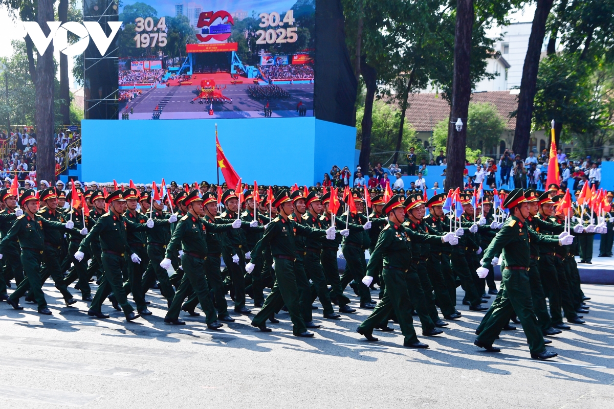 Các đại biểu trong khối lần đầu xuất hiện trước công chúng trong cuộc diễu binh, diễu hành sáng 30/4/2025.