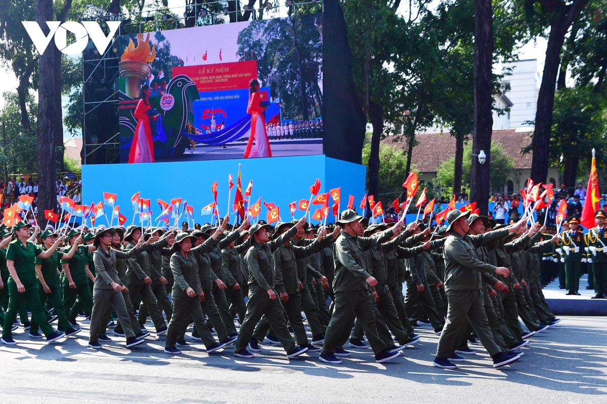 Ngoài ra, trong cuộc diễu binh, diễu hành kỷ niệm 50 năm Ngày giải phóng miền Nam, thống nhất đất nước còn có khối Cựu thanh niên xung phong - là lực lượng phục vụ tải đạn, vận chuyển lương thực, thông đường, chăm sóc thương binh trong kháng chiến.