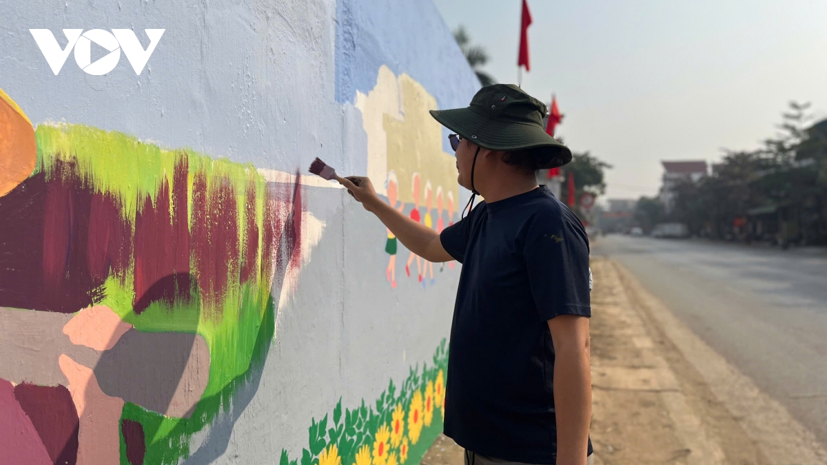 Trên tuyến đường chào mừng Đại hội XIV, người họa sĩ lặng lẽ đứng bên bức tường lớn, tay thoăn thoắt đưa nét cọ. Gam đỏ, vàng hiện lên sinh động, từng hình ảnh cổ động được chăm chút tỉ mỉ, lan tỏa khí thế phấn khởi, niềm tin và kỳ vọng hướng về Đại hội XIV của Đảng.