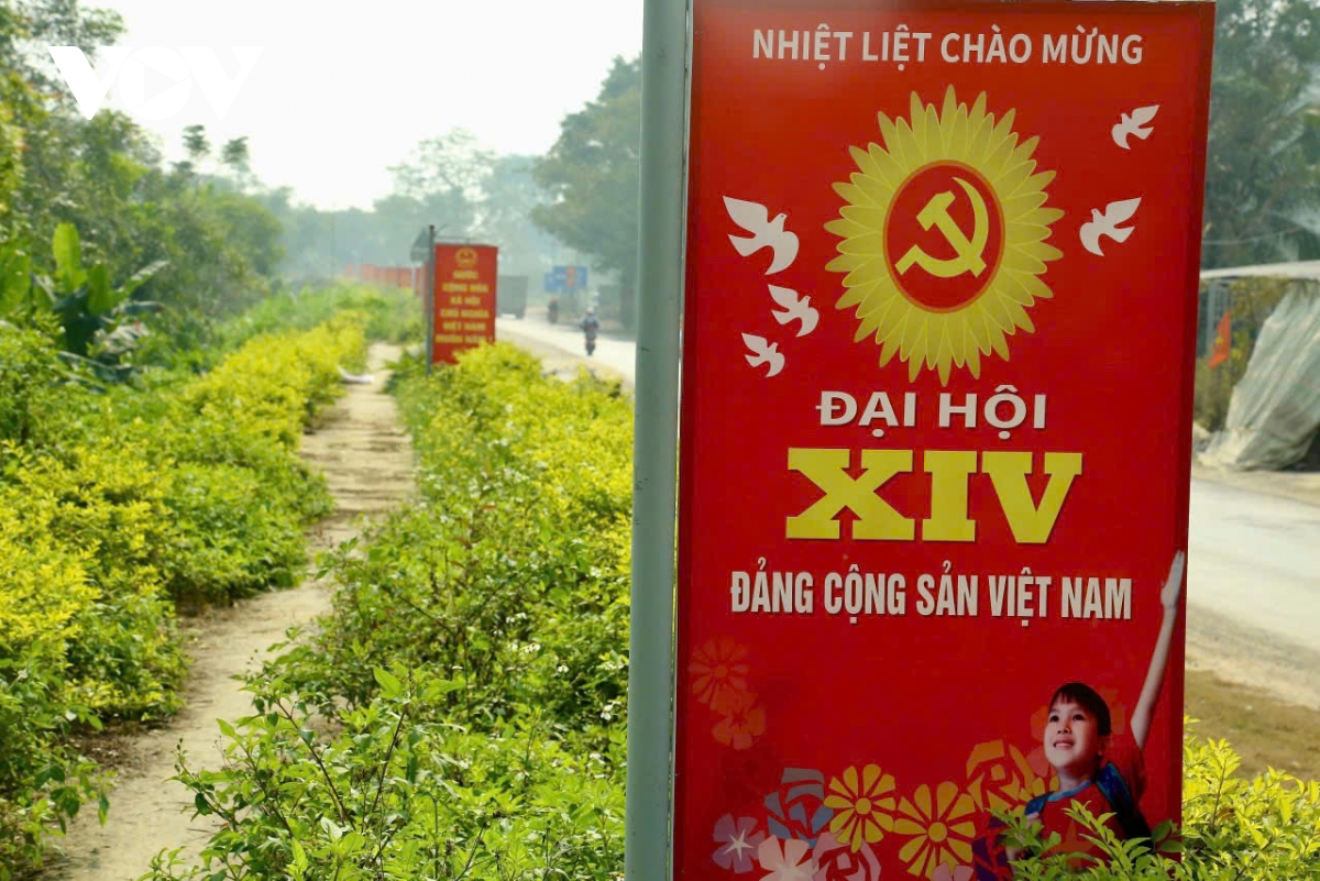 Trang hoàng cờ Đảng, cờ Tổ quốc, pano chào mừng Đại hội XIV, tạo không khí chính trị phấn khởi, cổ vũ các phong trào thi đua yêu nước.