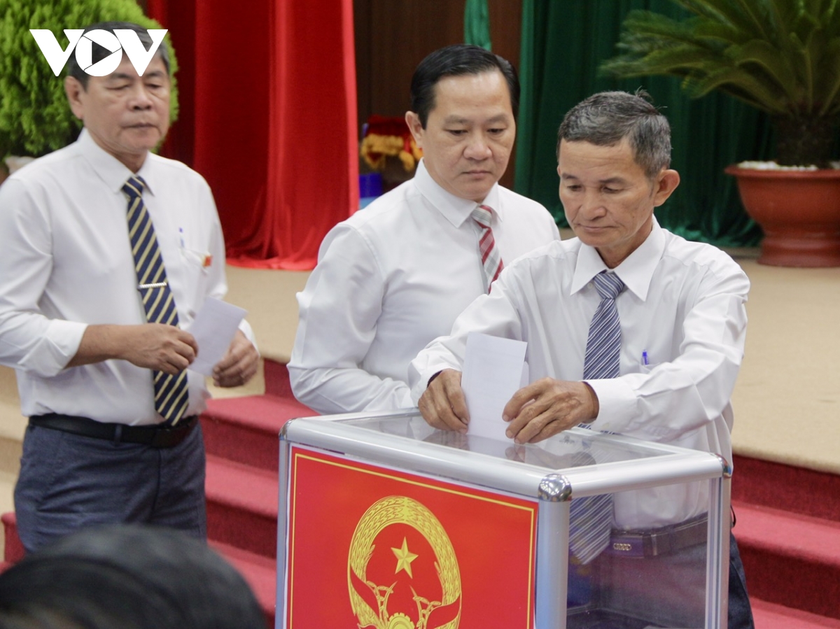 Các đại biểu bỏ phiếu bầu Chủ tịch, Phó Chủ tịch HĐND, UBND huyện Long Đất