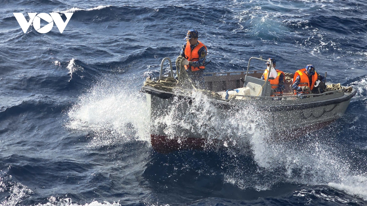 “Đi thường xuyên có kinh nghiệm sẽ tránh được những con sóng lớn. Khi gặp những con sóng lớn, phải lựa để đi sao cho đỡ chao đảo và an toàn”, Thiếu tá Vũ Trọng Cường cho biết.