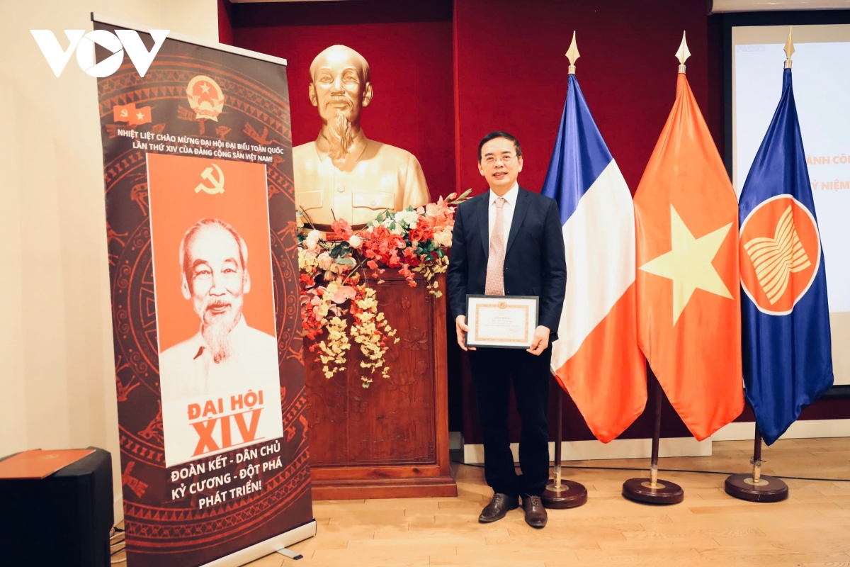 Tham dự buổi lễ có Đại biện lâm thời Đại sứ quán Việt Nam tại Pháp, Phạm Quang Anh; Đại sứ Nguyễn Thị Vân Anh, Trưởng Phái đoàn thường trực Việt Nam bên cạnh UNESCO, các cơ quan đại diện cùng đông đảo các thế hệ kiều bào tại Pháp.