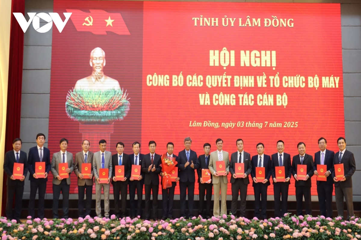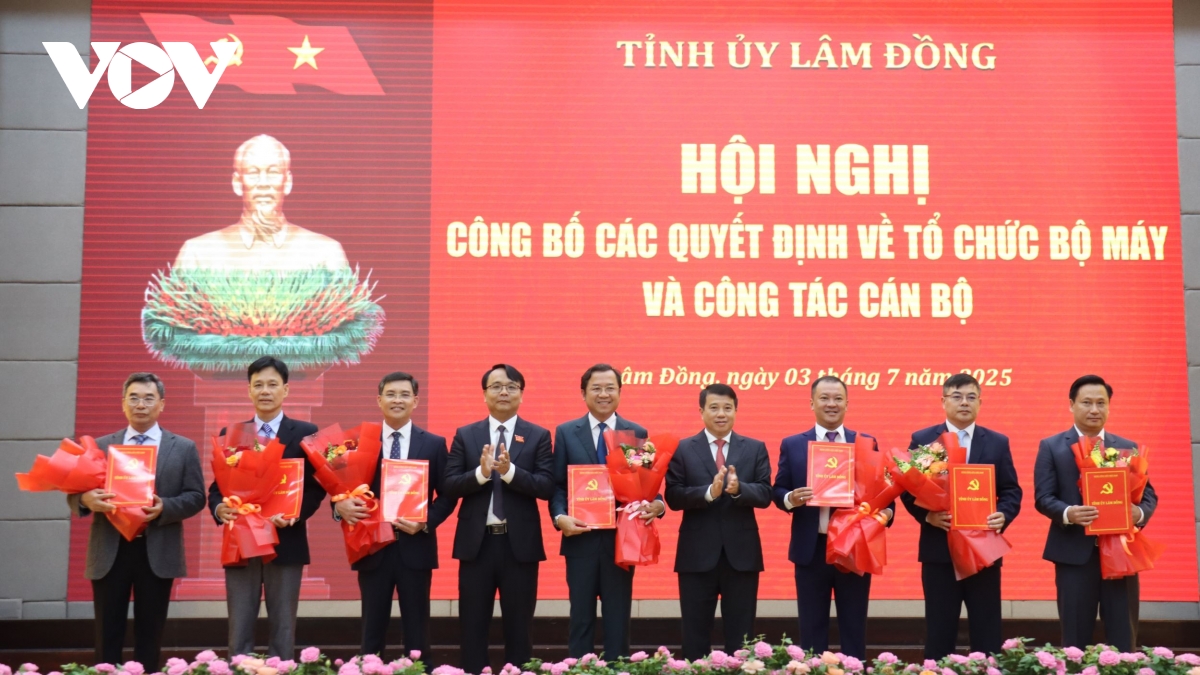 VOV.VN - Ngày 3/7, Tỉnh ủy Lâm Đồng tổ chức Hội nghị công bố các quyết định về tổ chức bộ máy và công tác cán bộ đối với các cơ quan Đảng, chính quyền cấp tỉnh.